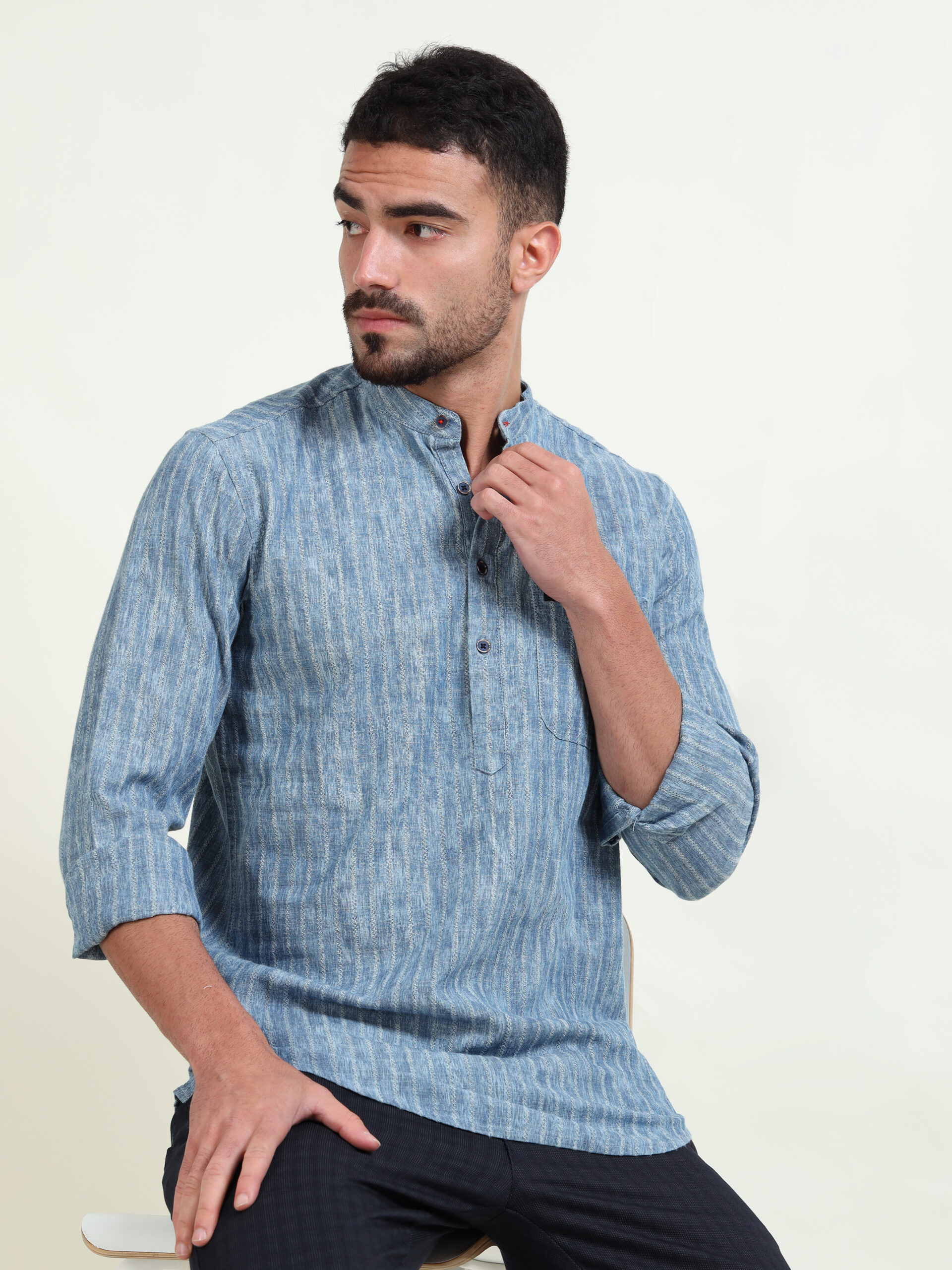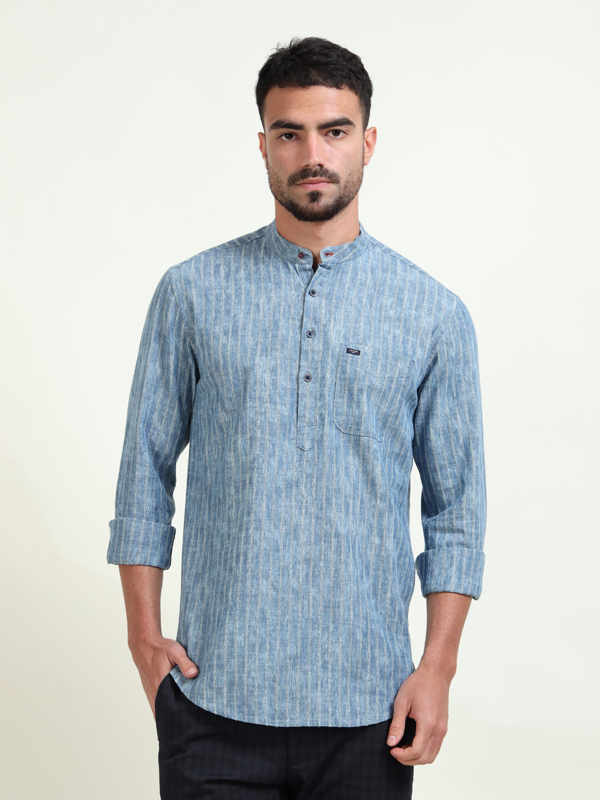 Elevate your everyday style with the Blue Cotton Short Kurta Shirt from Vidhi Clothing Company. Designed to offer a perfect balance of ethnic charm and contemporary fashion, this kurta shirt features a rich blue hue that enhances its timeless appeal. Crafted from 100% premium cotton, it ensures breathability, softness, and all-day comfort. The short-length kurta design provides a relaxed yet stylish fit, while the mandarin collar and buttoned placket add a touch of sophistication. Versatile and easy to style, this kurta shirt pairs effortlessly with jeans, chinos, or traditional bottoms, making it ideal for casual outings, festive occasions, and everyday wear. Redefine your wardrobe with effortless elegance and comfort!