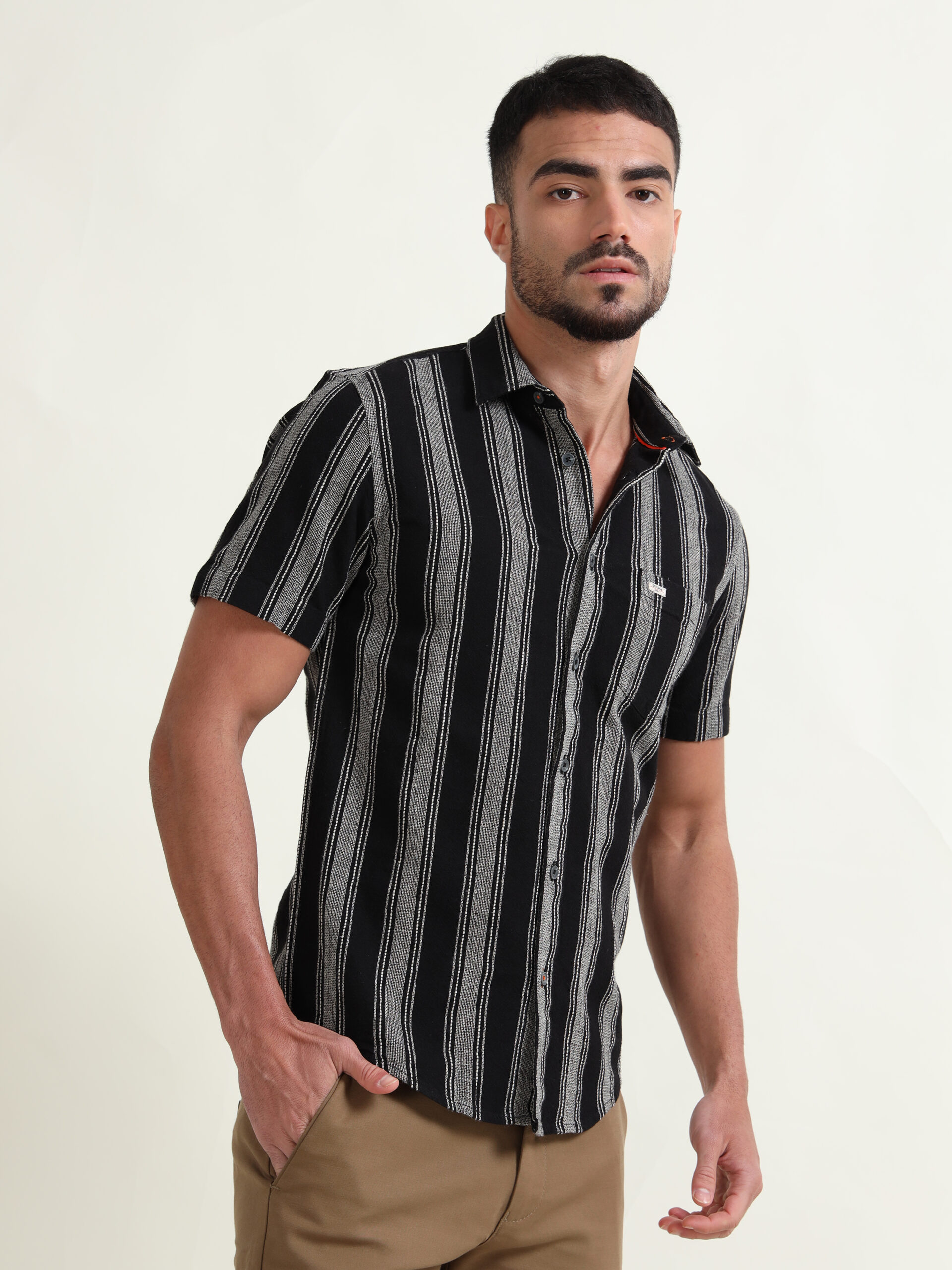 Be the first to review “Men Regular Fit Striped Spread Collar Casual Shirt”