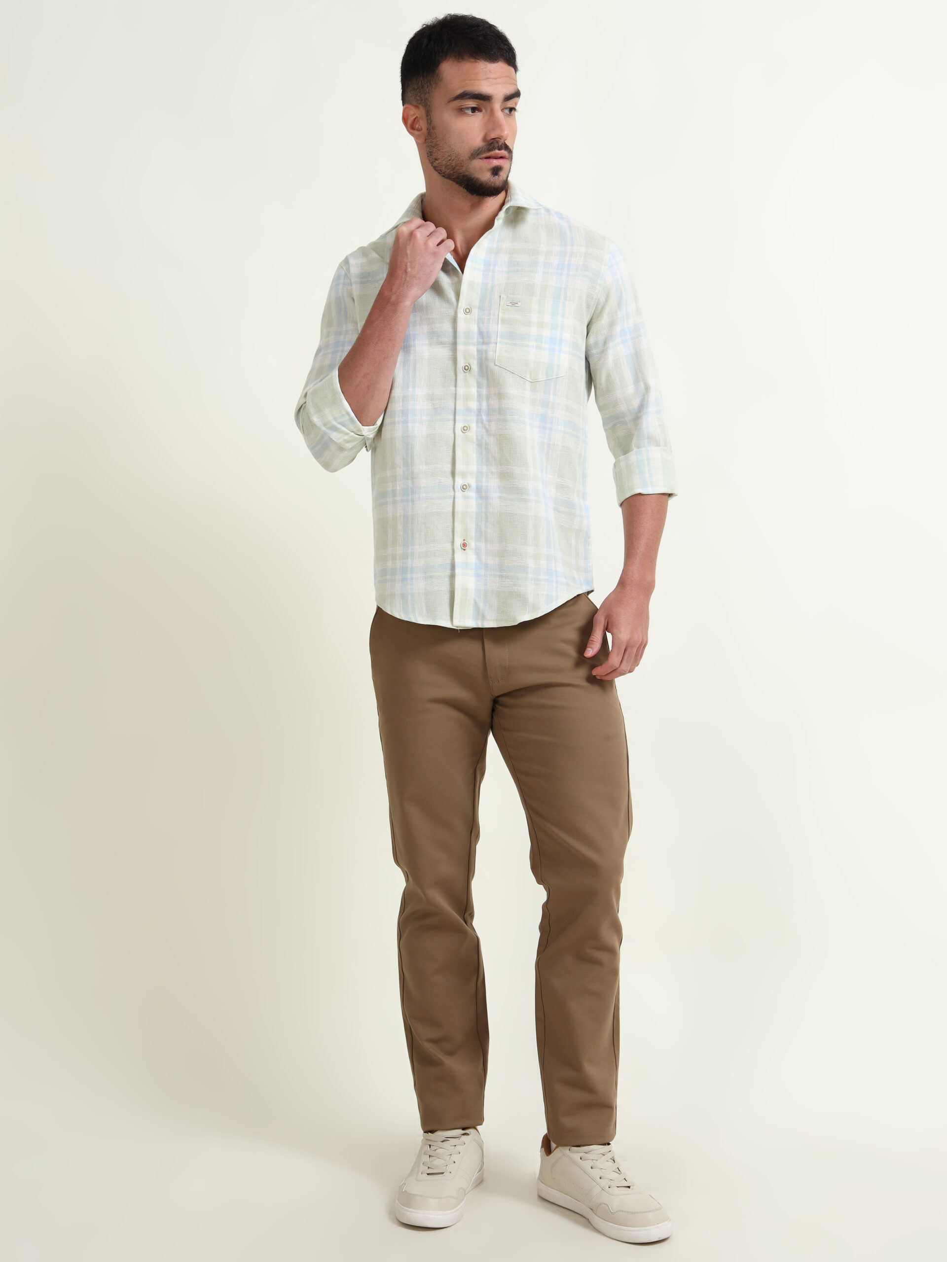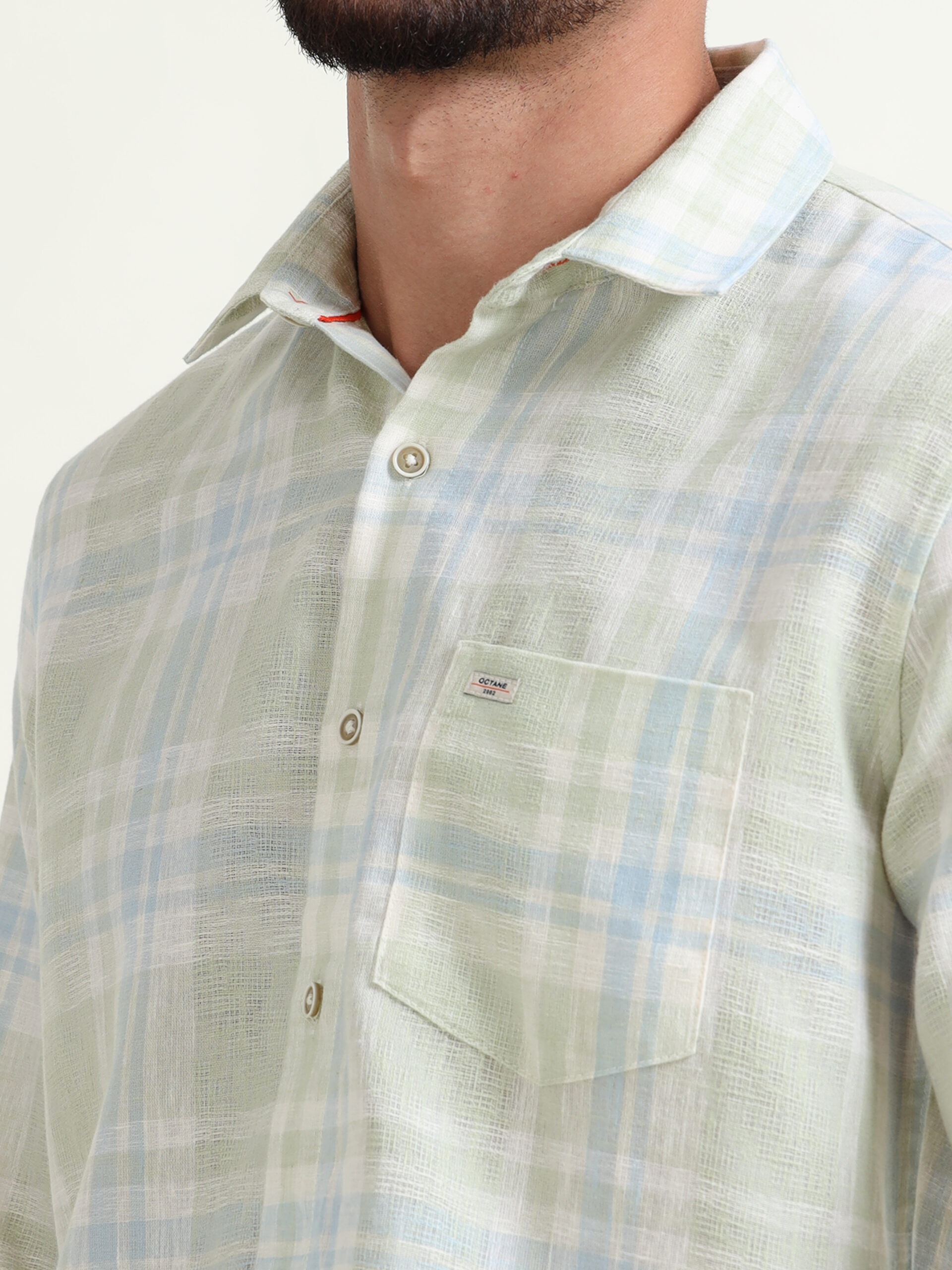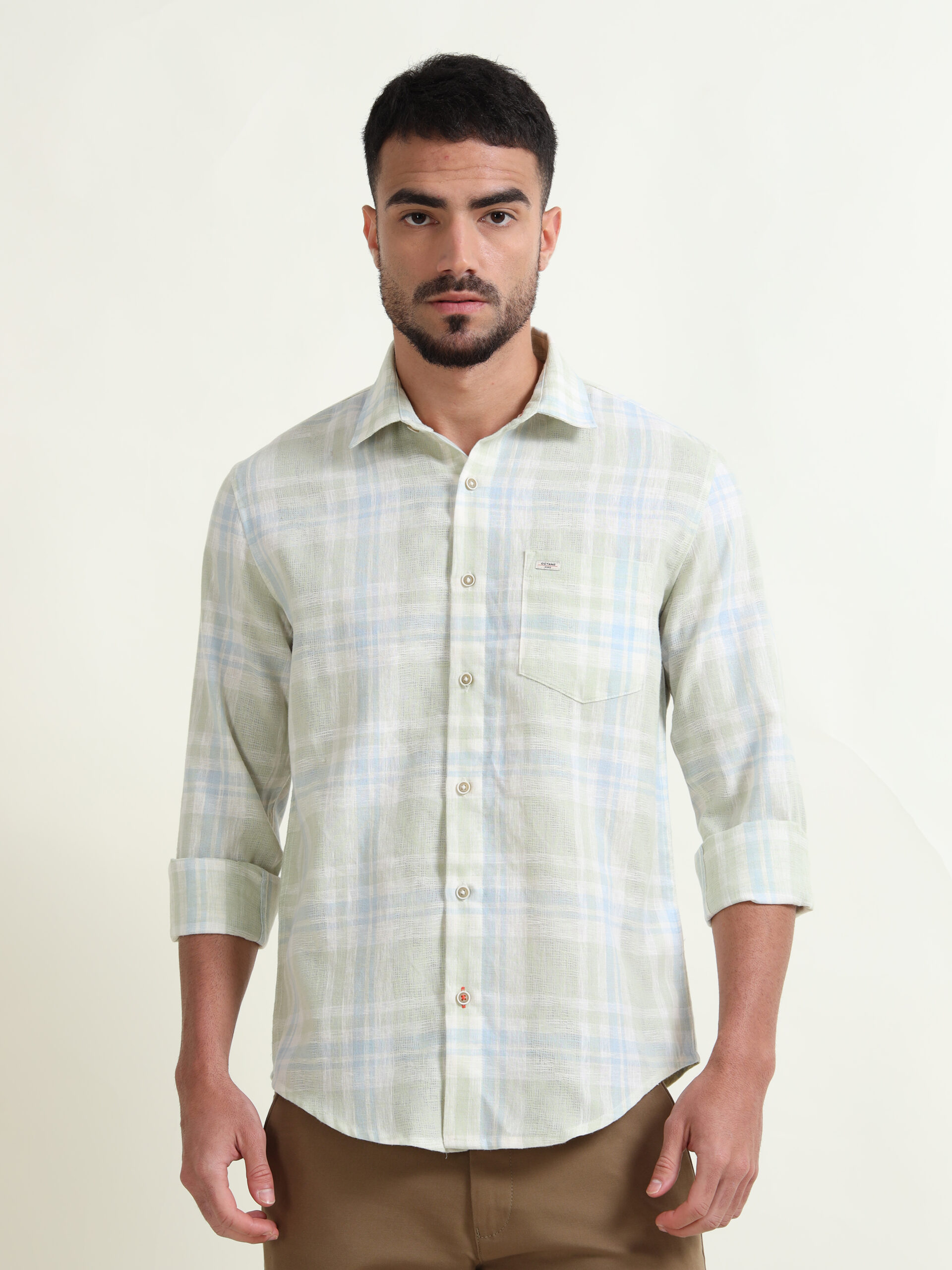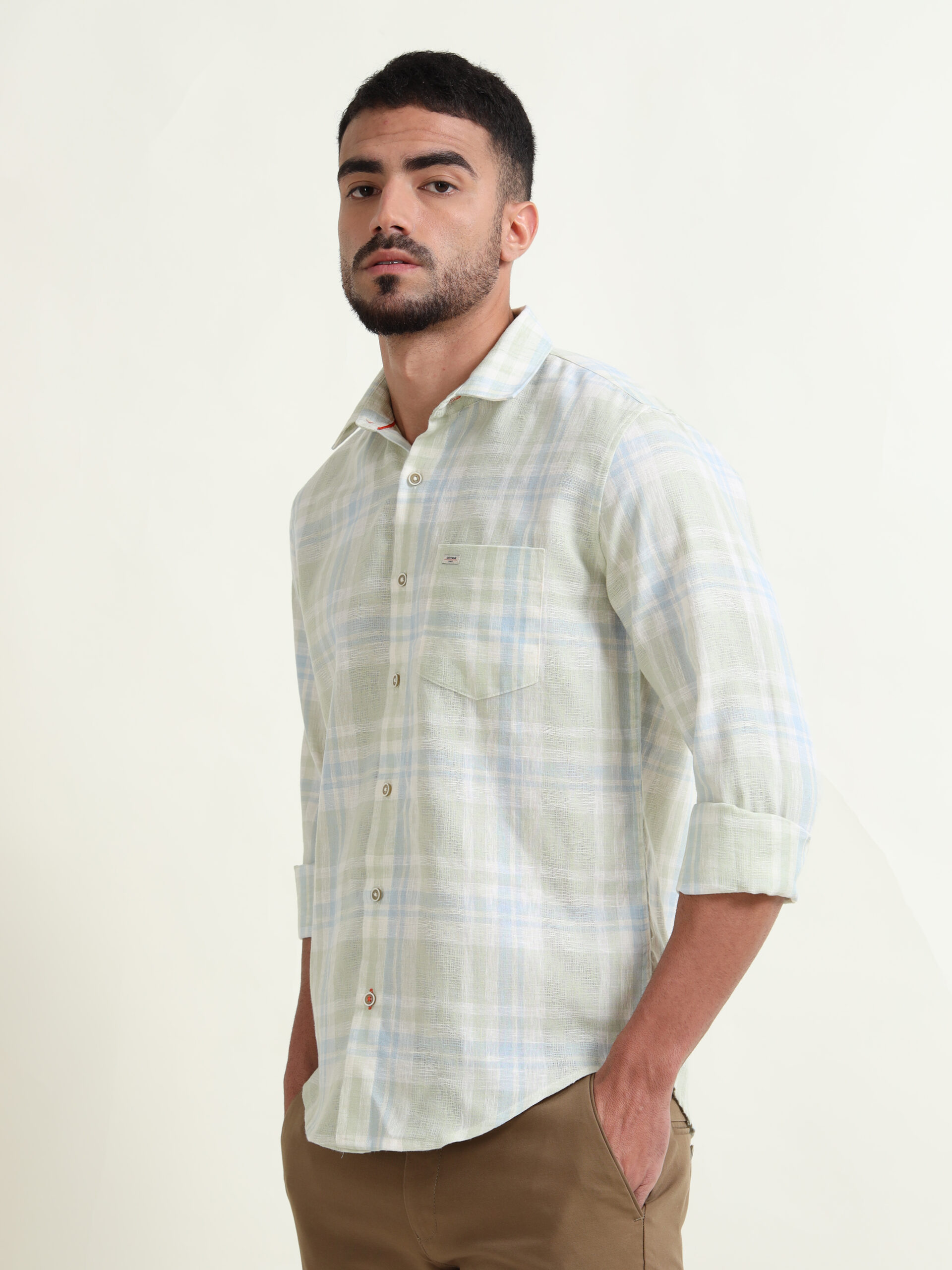 Men Slim Fit Checkered Spread Collar Casual Shirt