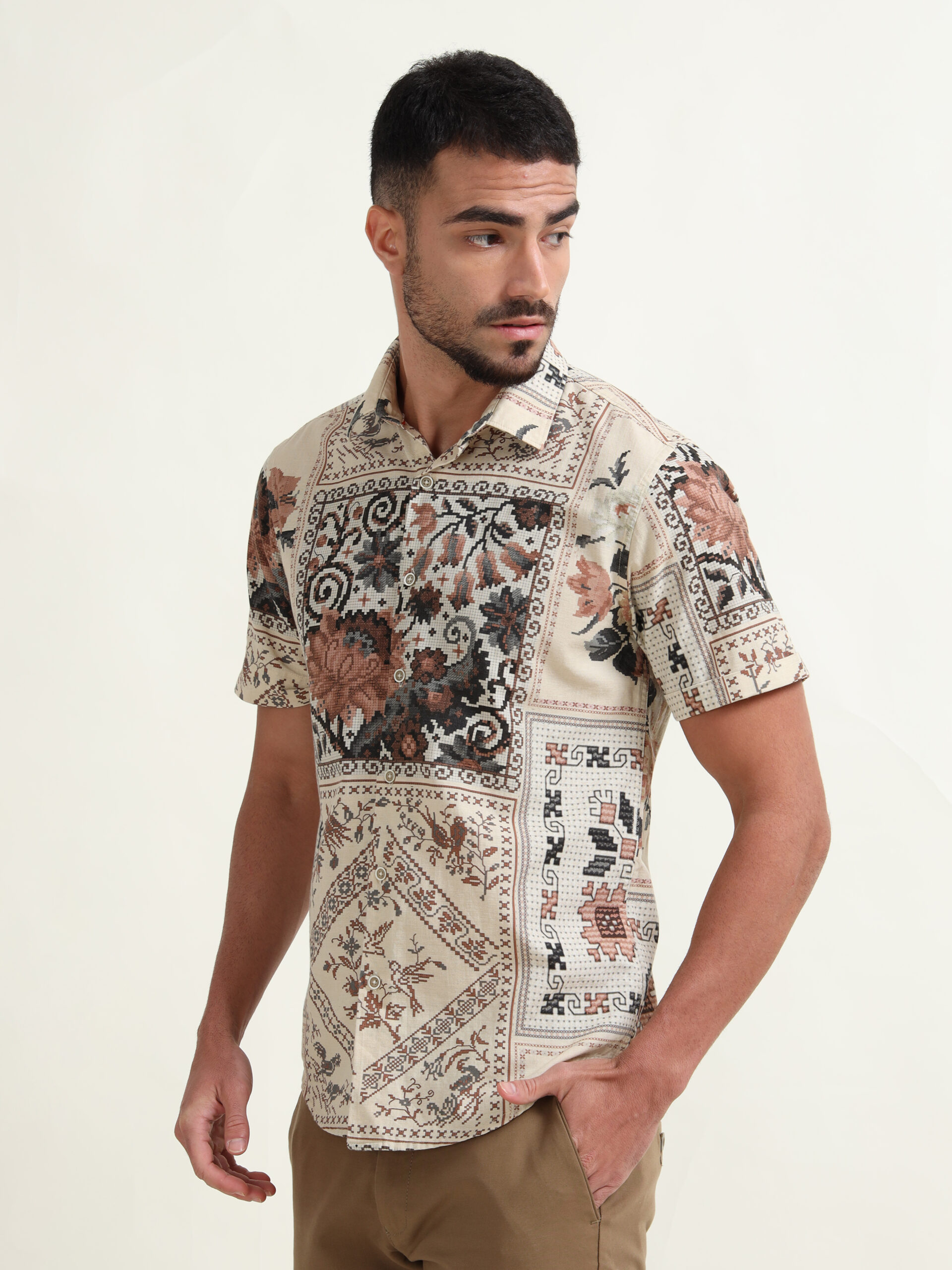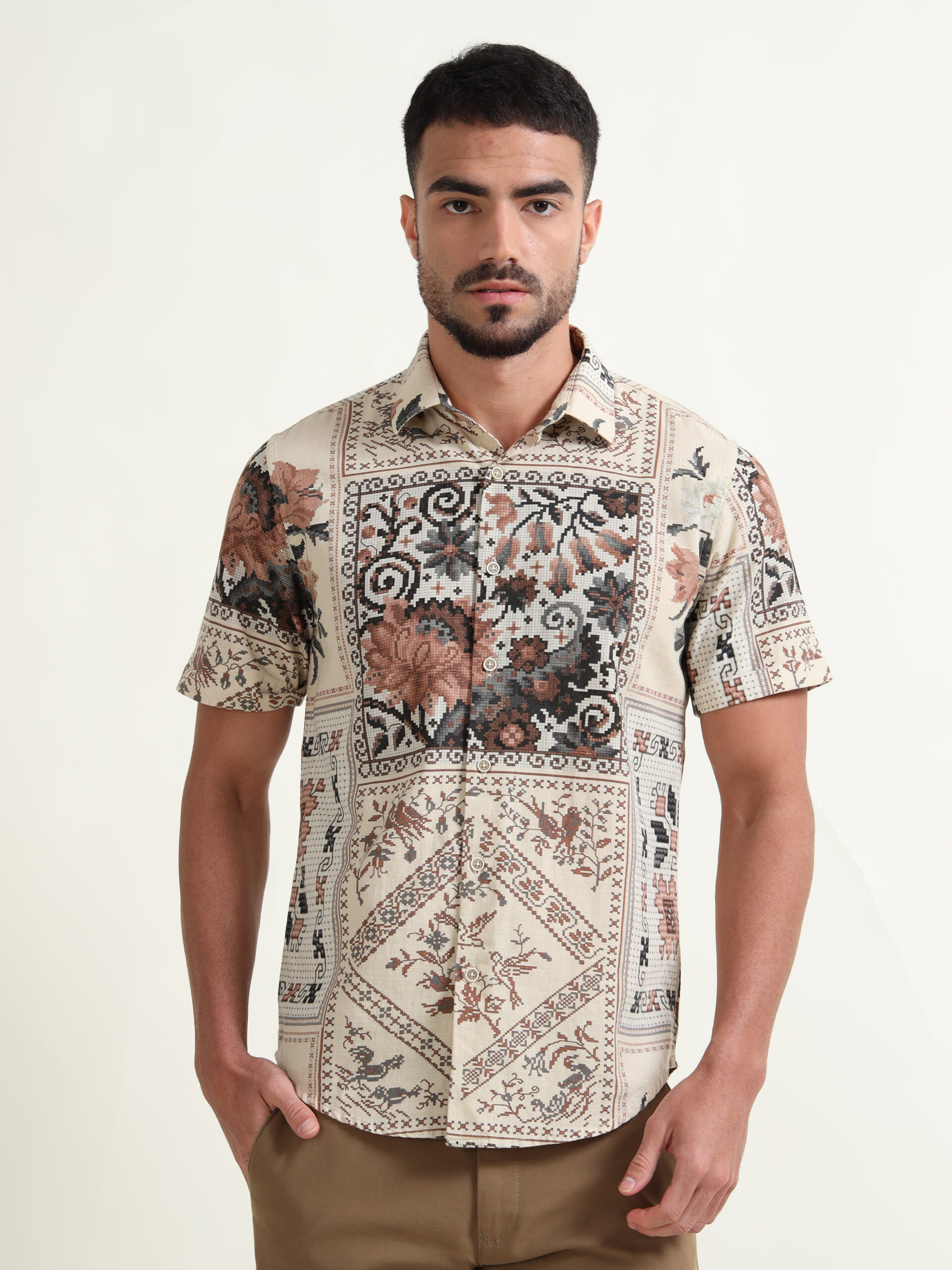 1 review for Men Slim Fit Printed Spread Collar Casual Shirt