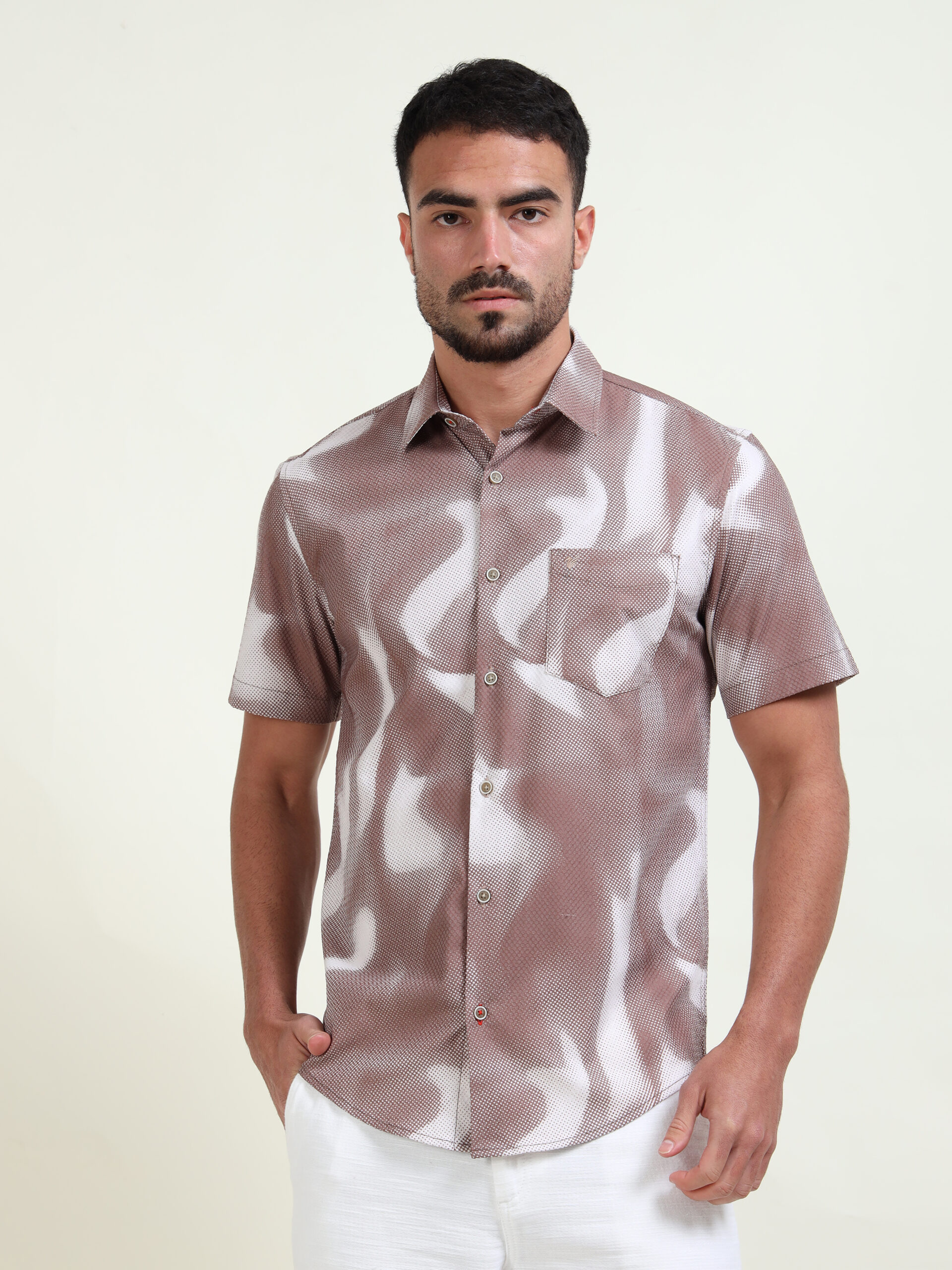 Men Slim Fit Printed Spread Collar Casual Shirt